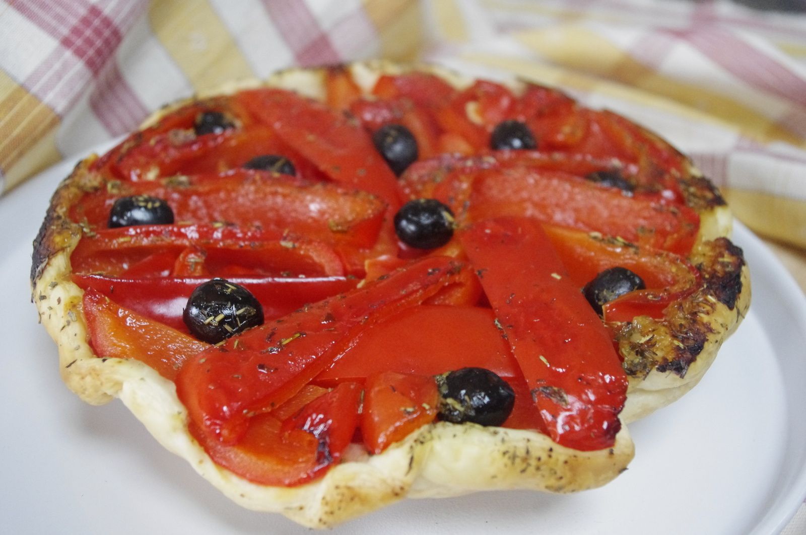 C'est sur le blog : http://la-gourmandiseest-un-jolidefaut.com/ que j'ai trouvé cette tatin aux poivrons qui répond parfaitement au thème(Tartes, quiches et cakes) proposé par la marraine du mois: Toque de choc .